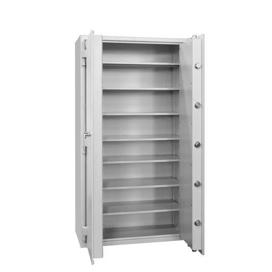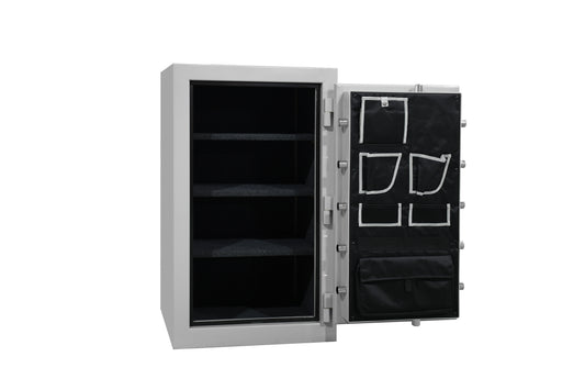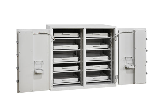 - Contains an integrated electronic locking mechanism with a time-delay release, and is secured in place, or is of a size and weight that cannot be easily removed.